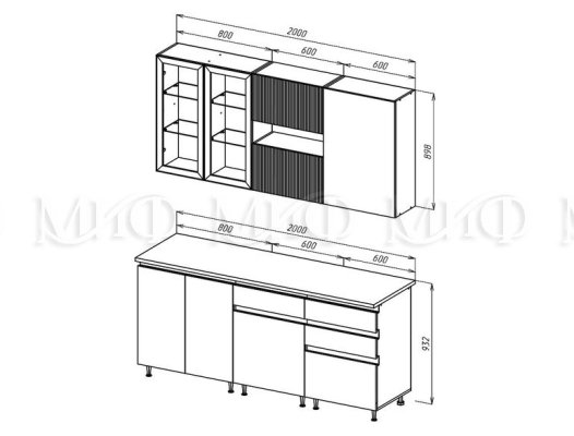 Высота верхних шкафов: 898 мм